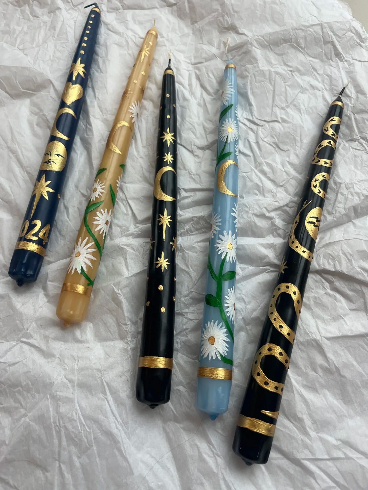 My dear friend Loulou (one of my daughter’s godparents) lives in a wild little artist town called Bisbee in Arizona and handpaints these candles to order: