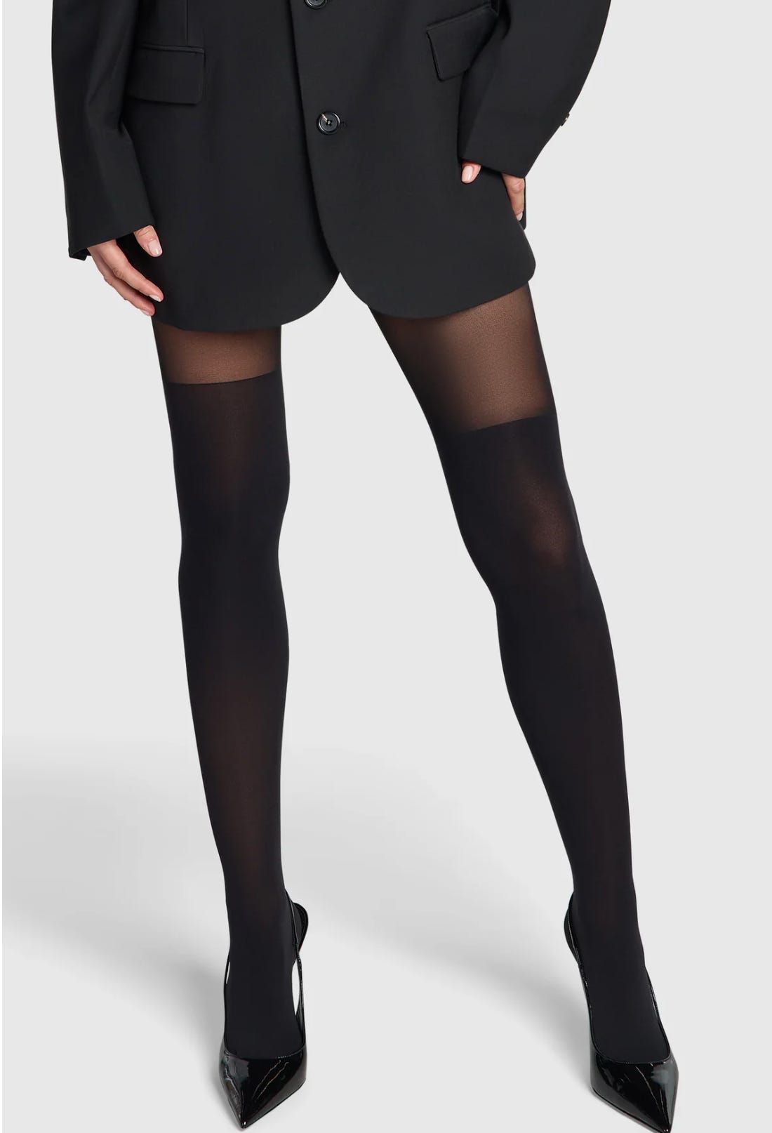 The other day I went to a party for The Fence magazine and wore these Heist ‘overknee’ tights with a totally black outfit of a secondhand miniskirt, an expensive jacket and the cheapest slingback heels from Zara. I was v pleased with the result. Mainly because it looked like I was wearing sexy thigh high boots, not £35 tights and £35 shoes. Well in my head it did.