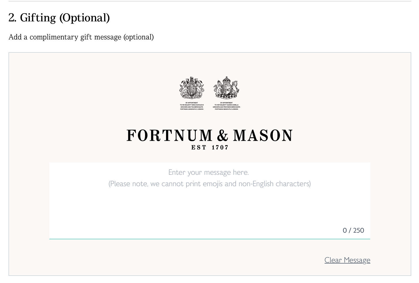 Gift delivery is a few quid on top but includes a note like the following which arrives as a handwritten white and gold card. Do this for birthdays too: