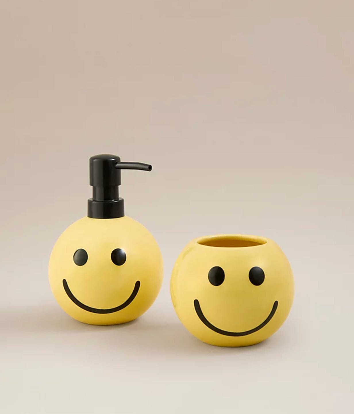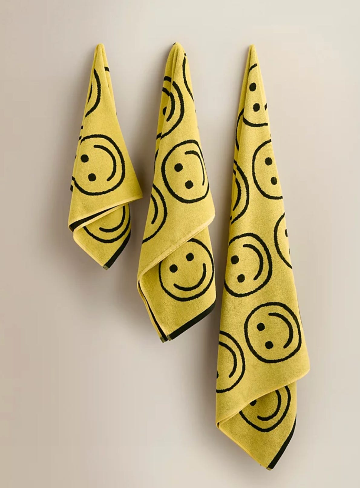 More cheerily, his house has a whole cabinet filled entirely with smiley face memorabilia, which I can’t get enough of. And now George at Asda have a range of smiley bathroom stuff including these towels and soap dispenser and toothbrush pot. Equally appealing to my hoary old rave generation as to our kids who don’t need to know exactly what their parents got up to or why these make us grin.